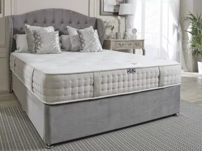 The spring system selected for the Joseph Crown Diadem Divan Bed and mattress is UK manufactured to give a consistency of feel and quality. The mattress features a pillow top design and an attractive quilted pattern. The Joseph Crown Diadem Divan Bed is upholstered with pressure-relieving memory foam which not only gives a luxury feel but also helps to ease aches and pains and improves the circulation of the body. The captivating cover has been selected to help increase airflow through the mattress and regulate sleeping temperature for a deeper, much more restful sleep. There are flag stitched turning handles on each side of the mattress for easy care and brass vents that will ensure that the mattress stays fresh and healthy for many more years than the average bed. The matching divan base comes with side or end storage in any combination.