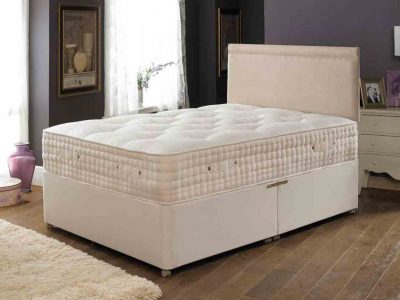 The generous layers of upholstery inside the core of the mattress include natural cotton, wool and cashmere, which will ease your body into a sumptuous slumber. These fillings provide great support making the mattress naturally hypo-allergenic with excellent cooling properties. The rows of hand-side stitching ensure that the mattress is securely fastened to the sturdy pocket spring system helping to prevent the mattress sides from collapsing.