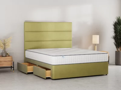 The spring system selected for the Utopia Serenity Pocket Spring Series 1000 Divan Bed and the mattress is manufactured from within the UK to give a consistency of feel and quality. The mattress is upheld with pressure-relieving wool which not only gives a luxury feel but also relieves aches and pains, while also improving circulation. The striking fabric cover has been designed to increase the airflow within the mattress and regulates sleeping temperature for a deeper and more restful sleep. There is also flag stitched turning handles on both sides of the mattress for easy care and brass vents that will guarantee that the mattress stays fresh and healthy for many years to come. The matching divan base comes with end or side storage in any combination.